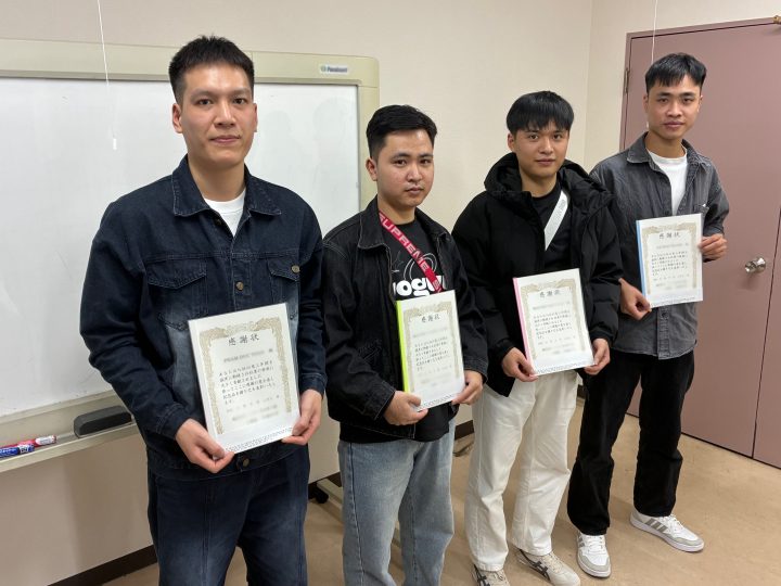 今回帰るのは四名の実習生たち。全員無事に三年間の技能実習をやり遂げることができました。