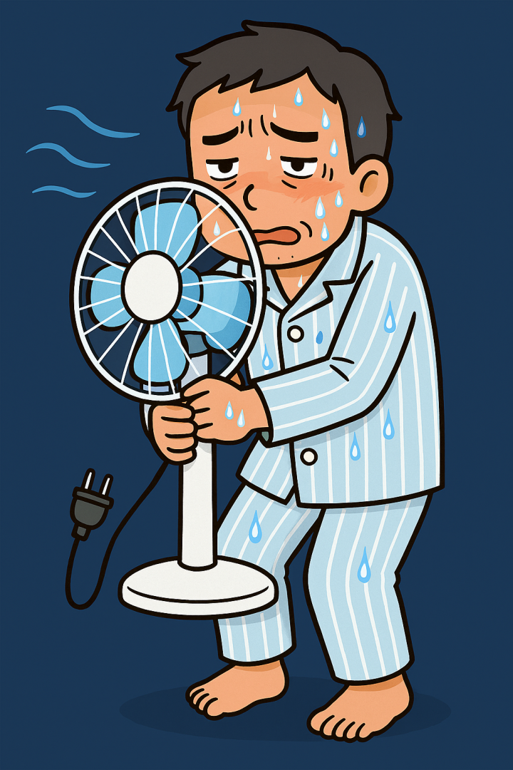 外の物置に扇風機があったのを思い出して、一度外に出て暗い中物置から扇風機を出してきて、大汗かきながらそれを寝室まで運んだんだ。