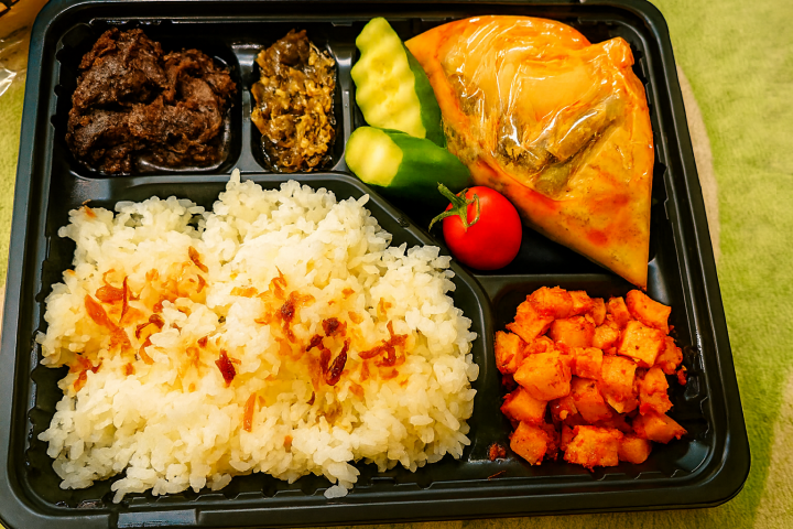 仕出し料理は、インドネシアでお祝いの時にも食べられる「ナシパダン」というお料理。