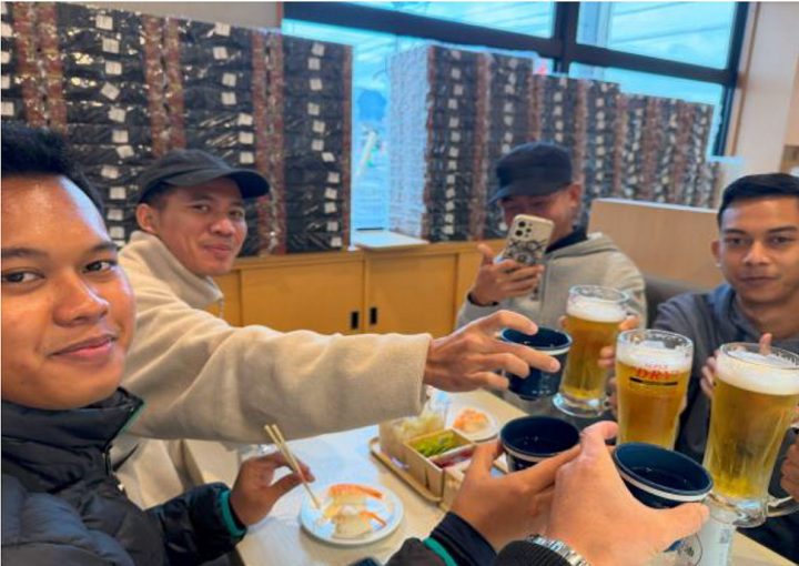 ある会社では、秋に入社した実習生たちをお寿司に連れて行ってくださいました!