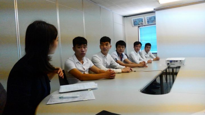 この日は企業幹部の皆様とのご挨拶、企業説明、注意事項の説明、見学、作業着・安全靴合わせ、銀行口座開設、自転車受け取り、宿舎と企業間の通勤練習、宿舎片付け、等々。