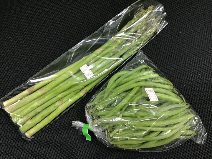 せっかくおいしそうだったから、私も買って帰りました。アスパラと、一緒に買ったのはインゲン。